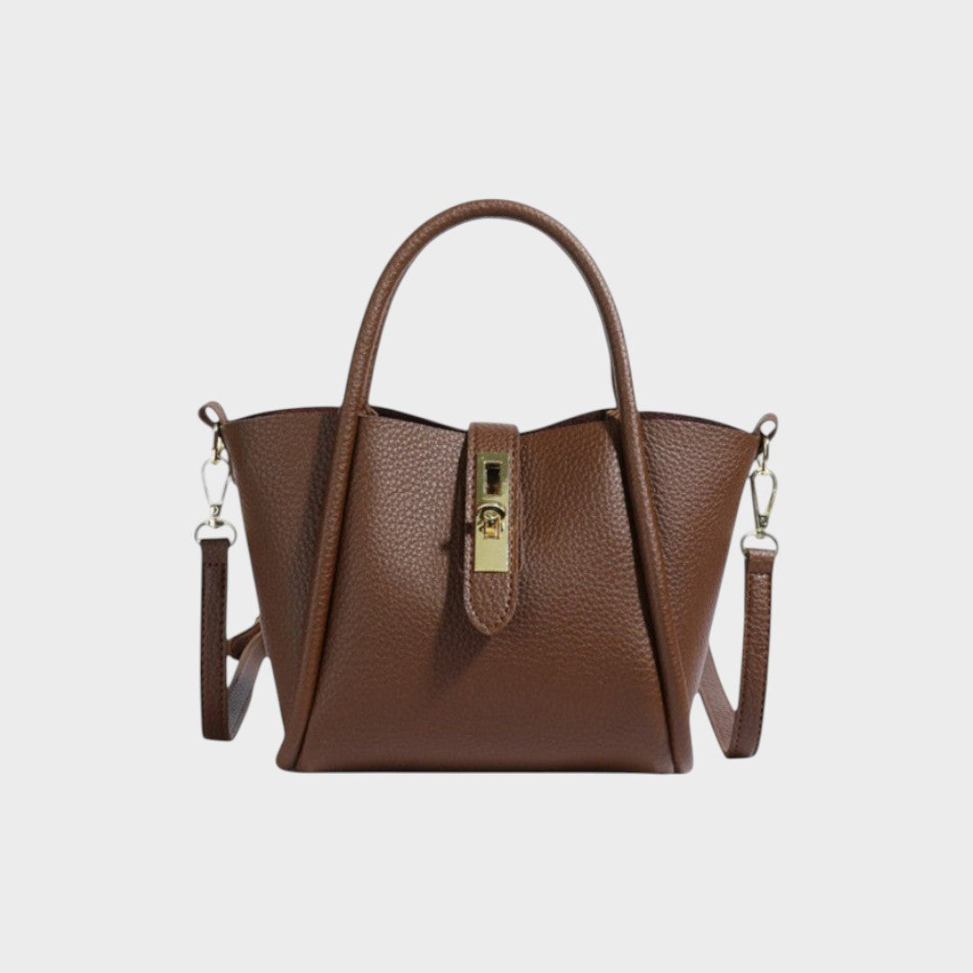 • Elegante cierre metálico: el detalle dorado le aporta un encanto sofisticado y garantiza su seguridad.