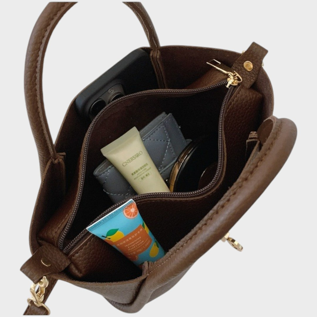 El bolso Alícia es el accesorio perfecto para quienes buscan una elegancia práctica en su día a día. Con un diseño estructurado y un acabado en suave textura de piel, combina sofisticación y funcionalidad en cada detalle. Con detalles de metal en tono dorado y una correa de hombro extraíble para un uso versátil.